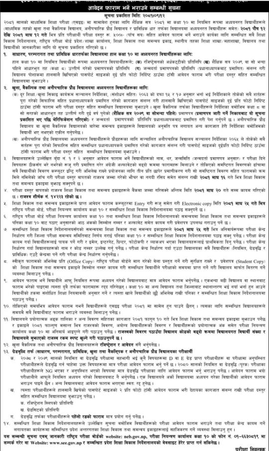 पुस १२ देखि माघ १२ गते भित्र फारम भरिसक्न कार्यालले भनेको छ । फारमका लागि प्रति परीक्षार्थी ५ सय दस्तुर लाग्ने छ ।